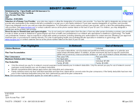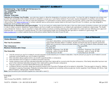 The Foundation offers two (2) health plan options including medical and prescription drug benefits. The medical portion of the plan is administered by Cigna.